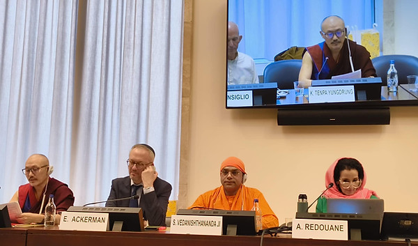 As a prelude to this day, on December 10, Khenchen Tenpa Yungdrung, representing the Yungdrung Bön tradition, took part as a speaker in the roundtable “Advancing World Meditation Day,” moderated by Professor Mark Williams (Professor of Clinical Psychology, University of Oxford). Other speakers included Sister Dinh Nghiem, Father Cyprian Consiglio (a Camaldolese monk), Chief Rabbi Eric Ackerman (Jewish Community of Geneva), Swami Vedanishthananda ji (Vedantic Centre Geneva), and Aïcha Redouane (singer and interpreter of Arabic Sufi poetry).